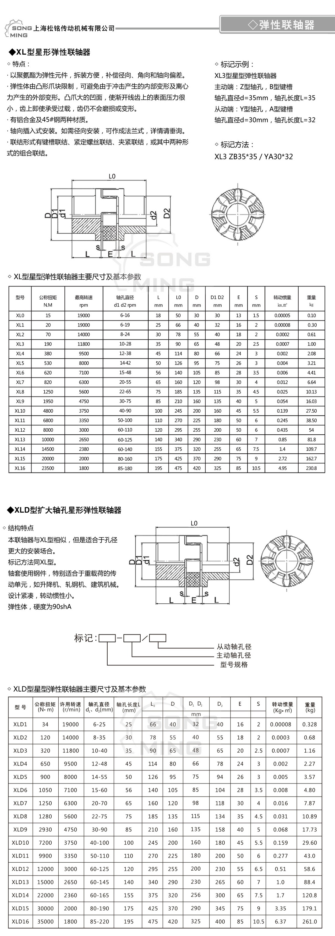 产品详情:产品中心XL/XLDstar弹性联轴器 ●该联轴器类似于xld种类,但适用于大口径安装。 ●记号方式与xld种类相同。